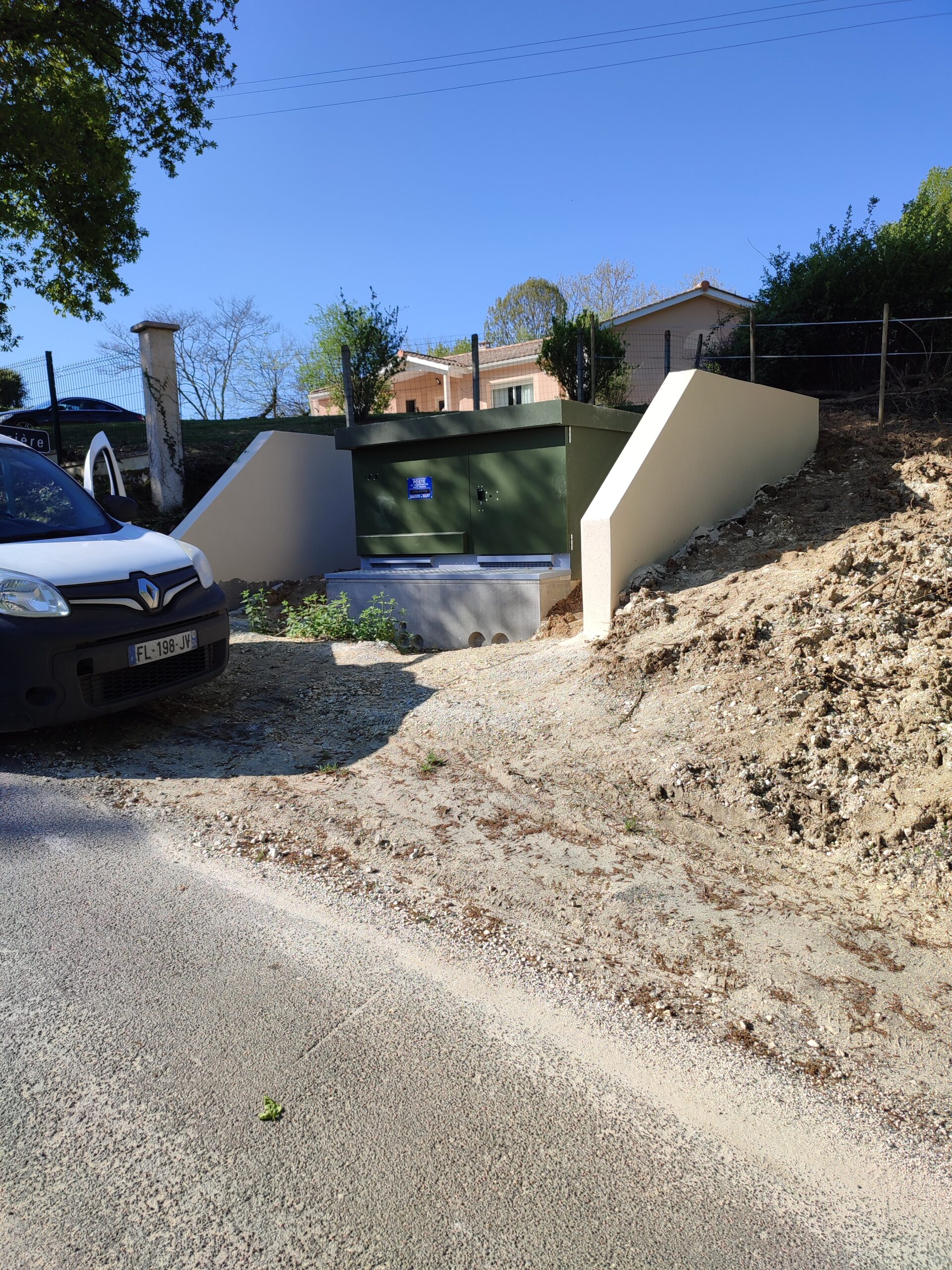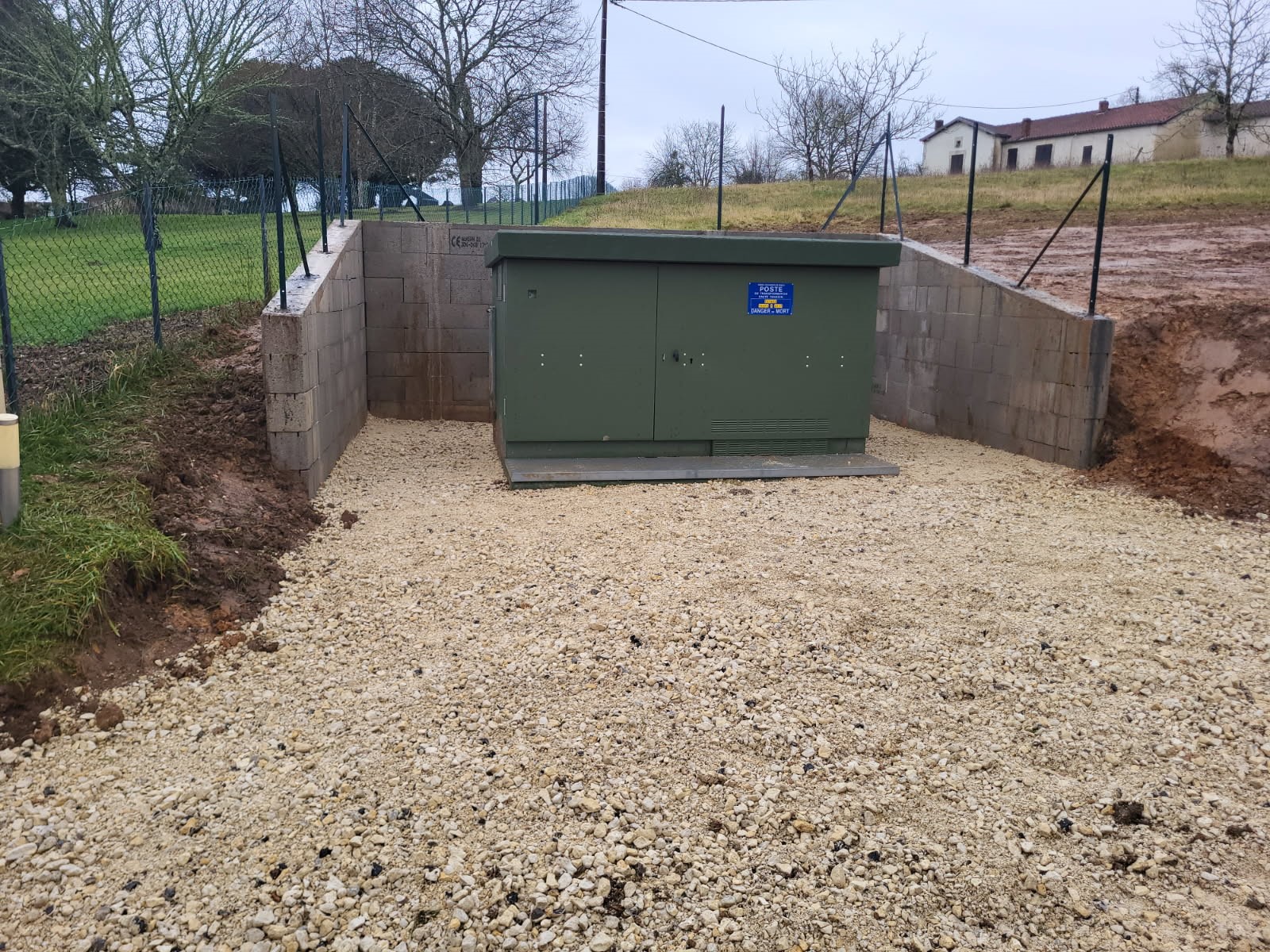 Pour ce faire nous terrassons à la profondeur adapté au type de poste, et au besoin, nous réalisons des murs de soutènement pour maintenir le terrain terrassé.